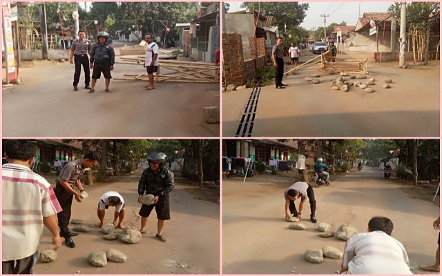 Agar jalan bisa dilewati lagi, Bripka Ali Masruri, bersama Kepala Desa Tangkil Tengah dibantu warga membuka blokade jalan yang dilakukan oleh warga. Jalan dibuka sekira pukul 06.30 WIB.