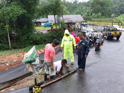Saat ini, Senin (21/01) anggota Polsek Reban dibantu warga bersama petugas Binamarga Provinsi Jawa Tengah telah memasang penanda dengan bambu dan tali, agar penguna jalan waspada dan berhati-hati saat melintas.