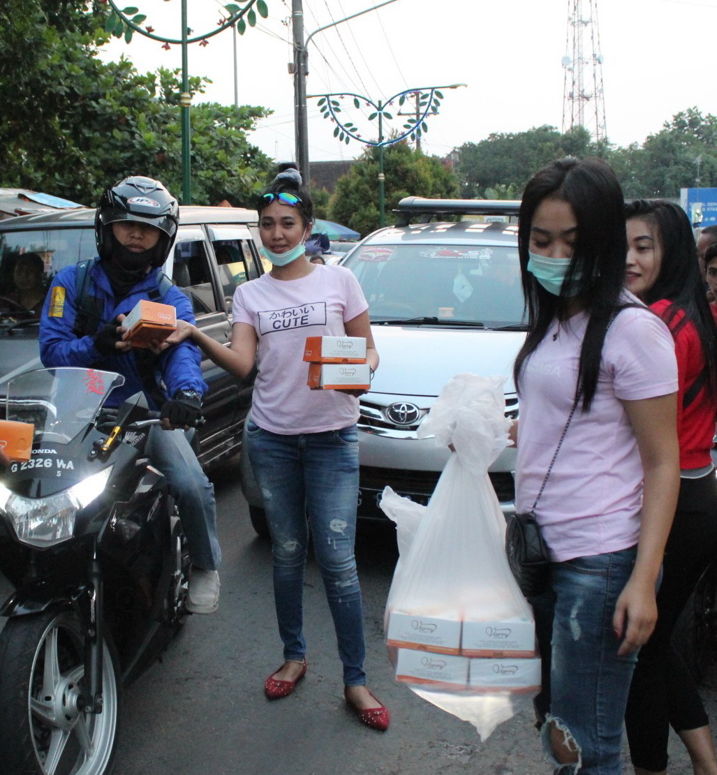 Takjil yang dibagikan oleh anggota WR dari Paguyuban Karaoke Alas Roban (Pakar) Kabupaten Batang yang cantik-cantik tersebut mengundang perhatian pengguna jalan yang melintas ruas area Alun-alun Limpung.
