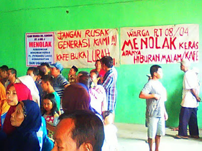 Puluhan warga meminta pemilik karaoke benar-benar menutup usahanya karena berdampak buruk terhadap lingkungan warga Wangandowo.