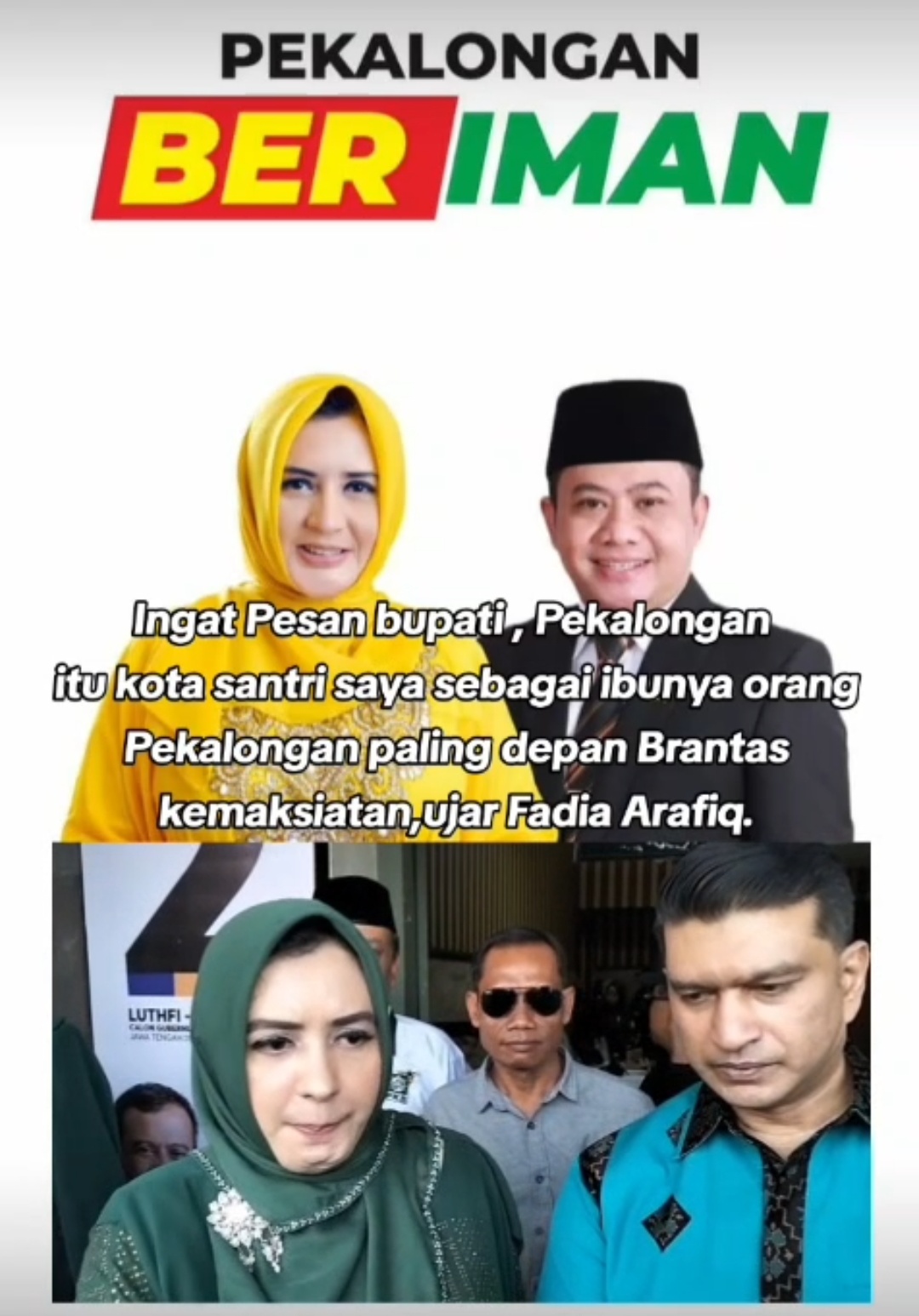 Sebelumnya, Bupati Fadia Arafiq pernah menegaskan dalam wawancara keprihatinannya terhadap maraknya praktik kemaksiatan di wilayahnya. “Saya sebagai ibunya orang Pekalongan sangat sedih melihat kemaksiatan di Kabupaten Pekalongan. Kita ini santri, dan saya paling depan untuk memberantas kemaksiatan,” ujarnya tegas. Sebagai bukti komitmen, pemerintah telah menutup kafe/warung penjual minuman keras (KF) di Gandarum, Kecamatan Kedungwuni, yang meresahkan masyarakat.