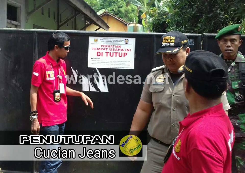 Dua cucian jins yang ditutup milik Riskiyah dan Suwarno yang dilakukan oleh Polisi Pamong Praja dan Pemadam Kebakaran Kabupaten Pekalongan didampingi pihak Perkim dan LH, Koramil, Polsek dan pihak Kecamatan Wonopringgo.