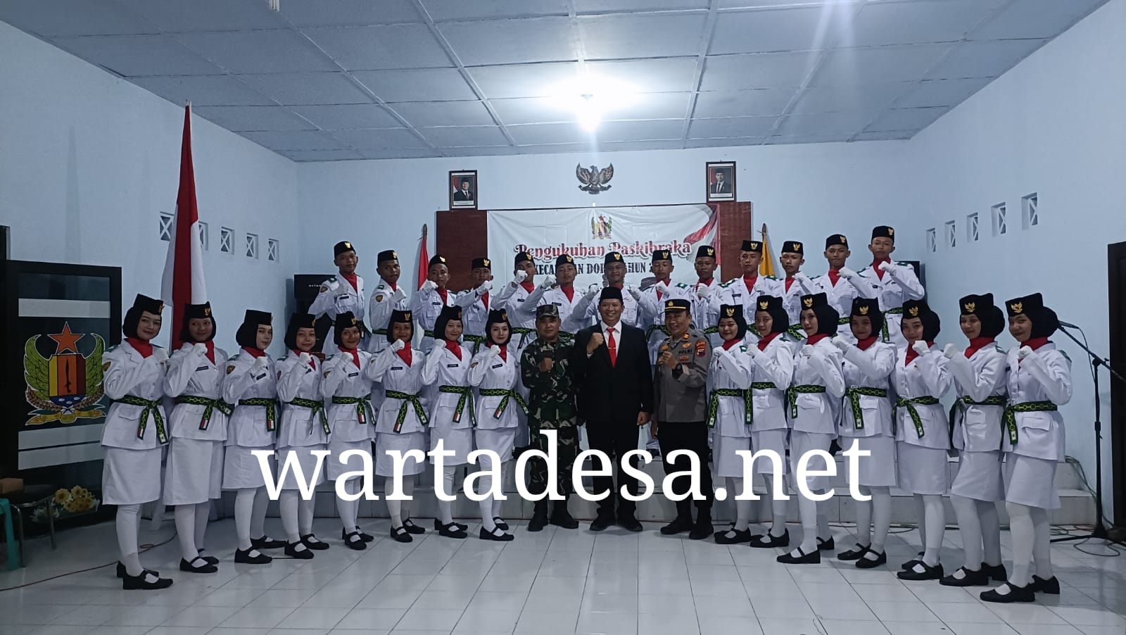 WARRTA DESA, PEKALONGAN – Forum Komunikasi Pimpinan Kecamatan (Forkompimcam) Doro, Kabupaten Pekalongan, menggelar acara pengukuhan Pasukan Pengibar Bendera Pusaka (Paskibraka) tingkat kecamatan di Aula Kecamatan Doro, Rabu (14/8/2025) malam. Kegiatan dimulai pukul 20.00 WIB dan berlangsung hingga selesai dengan khidmat.