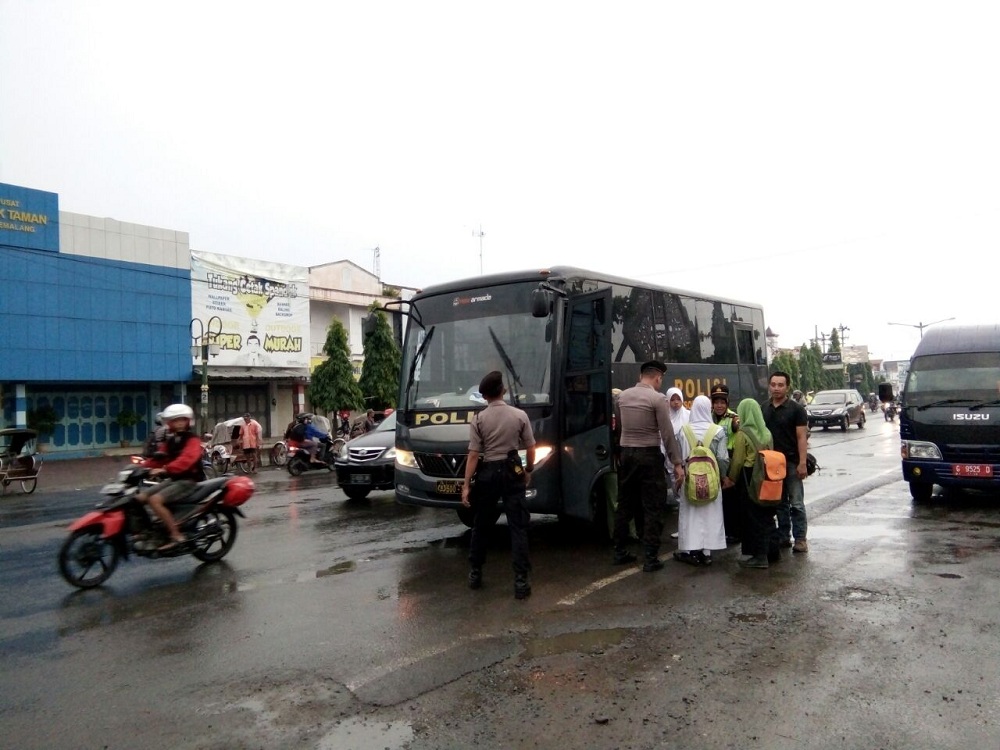 Anggota Polsek Bantarbolang, Polres Pemalang saat melaksanakan patroli menjumpai siswa SMP yang sedang menunggu bus. “Anggota kami dipimpin Aipda Teguh Yuwono mengantar siswa tersebut ke sekolah yang dituju,” jelas Kapolsek Bantarbolang, AKP Sriyanto.
