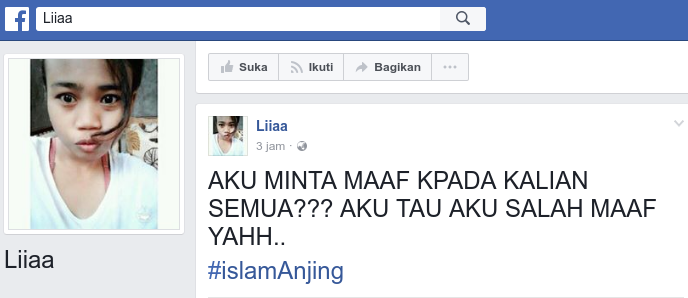 Tidak berselang lama, akun Liiaa memposting lagi tulisan meminta maaf, namun dengan tanda pagar (tagar/hastag) yang provokatif