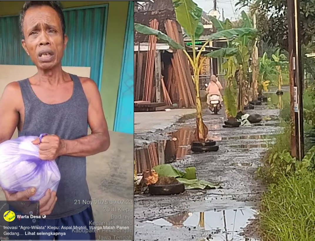 Diberitakan sebelumnya, fenomena alam paling langka terjadi di Desa Dadirejo Tirto, Pekalongan! Warga setempat, dengan semangat juang yang membara dan sendal jepit anti-lumpur, mendadak beralih profesi menjadi petani pisang. Bukan di ladang, melainkan… di tengah jalan raya mereka sendiri!