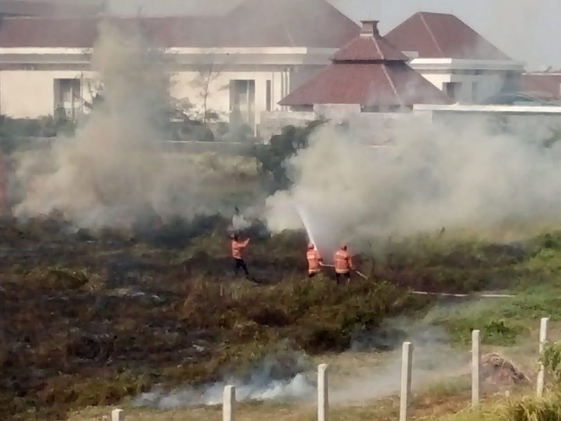 Pemalang, Wartadesa. – Musim kemarau menyebabkan gambut kering yang ditumbuhi semak belukar di sebuah lahan kosong milik PT Teksmaco Jaya Pemalang, di Petarukan, Kabupaten Pemalang terbakar. Kebakaran terjadi sekira pukul 11.30 WIB, Ahad (29/07) siang.