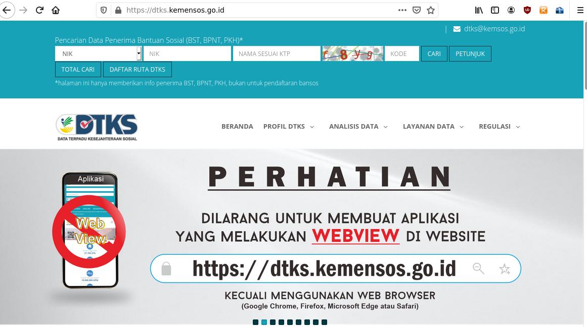 - Cek data Anda, apakah masuk dalam DTKS dengan mengakses https//dtks.kemensos.go.id/ masukkan NIK, nama dan kode pengaman dalam kolom pencarian.