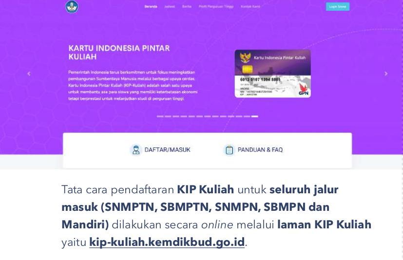 - Siswa mendaftar secara online dengan mengakses https//kip-kuliah/kemdikbud.go.id Pendaftaran juga dapat dilakukan secara mobile dengan