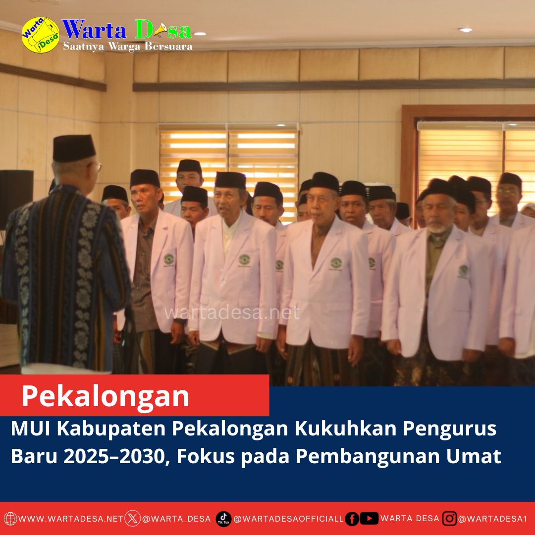 PEKALONGAN, WARTADESA. — Majelis Ulama Indonesia (MUI) Kabupaten Pekalongan resmi mengukuhkan jajaran pengurus untuk Masa Khidmah 2025–2030 di Aula Setda Kabupaten Pekalongan, Ahad (26/4/2026). Pengukuhan yang mengusung tema “Peran Strategis MUI dalam Mendukung Pembangunan Umat Berkelanjutan di Kabupaten Pekalongan” ini dipimpin langsung oleh Sekretaris MUI Jawa Tengah, Muhyiddin.