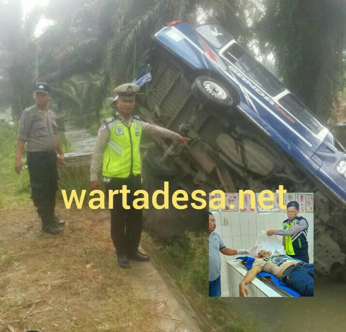 Simalungun, Wartadesa. – Kecelakaan satu angkutan pedesaan merk Ganda Transport BK 1887 WA nomor pintu 998 terjun bebas ke dalam saluran irigasi di Km 7-8 desa Maligas Bayu Nagori Saribu Asih Kecamatan Hatonduhan Kabupaten Simalungun Provinsi Sumatera Utara Senin (27/5) sekitar pukul 07.00 WIB.