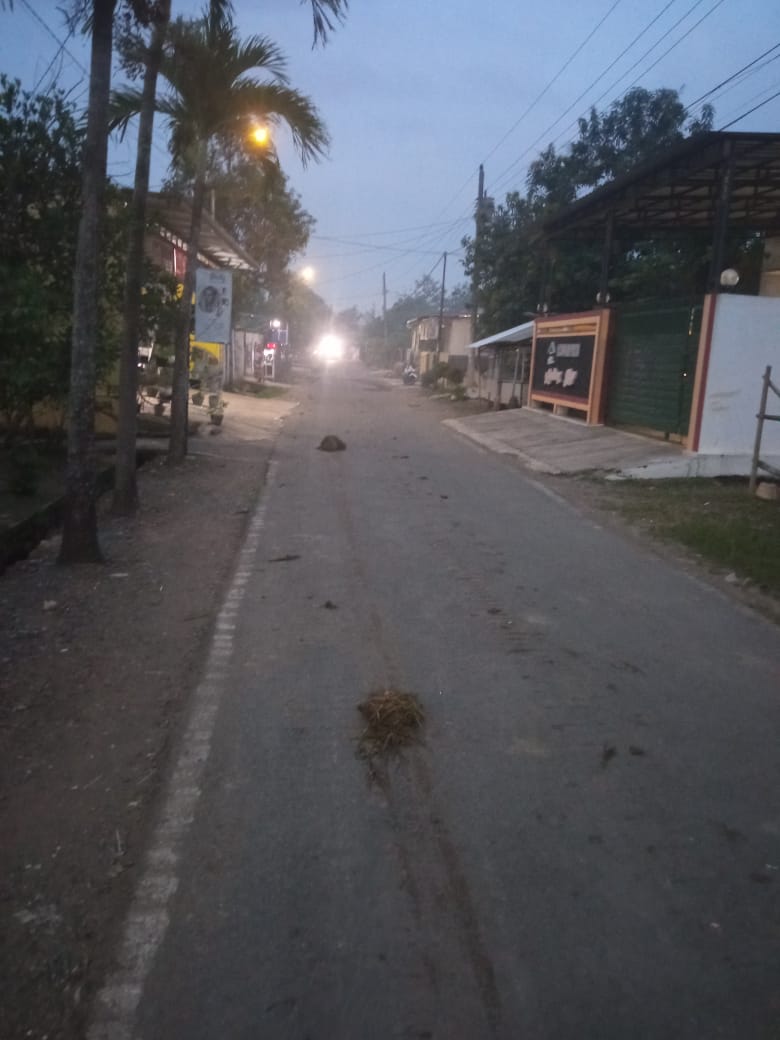 Mesin combine tersebut seharusnya diangkut menggunakan truk setelah selesai digunakan di sawah. Namun, oleh beberapa oknum, mesin ini justru dikendarai langsung di jalan umum dengan beberapa orang menumpang di atasnya. Akibatnya, sisa-sisa tanah dari roda mesin combine berserakan di sepanjang jalan yang dilalui.