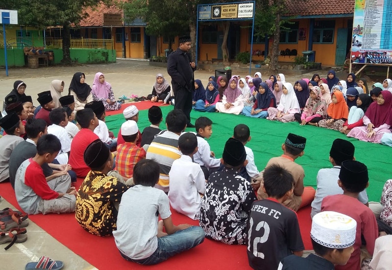 Selepas ujian hafalan qur’an, acara dilanjutkan dengan kegiatan buka bersama guru dan siswa kelas 3-6 pada Rabu (15/05) dengan mendengarkan tauziah dari ustadz Agung Setyo Budi, lulusan Pondok Pesantren IMBS Miftakhul Ulum Pekajangan. (Luluk Zakiyah/WD)