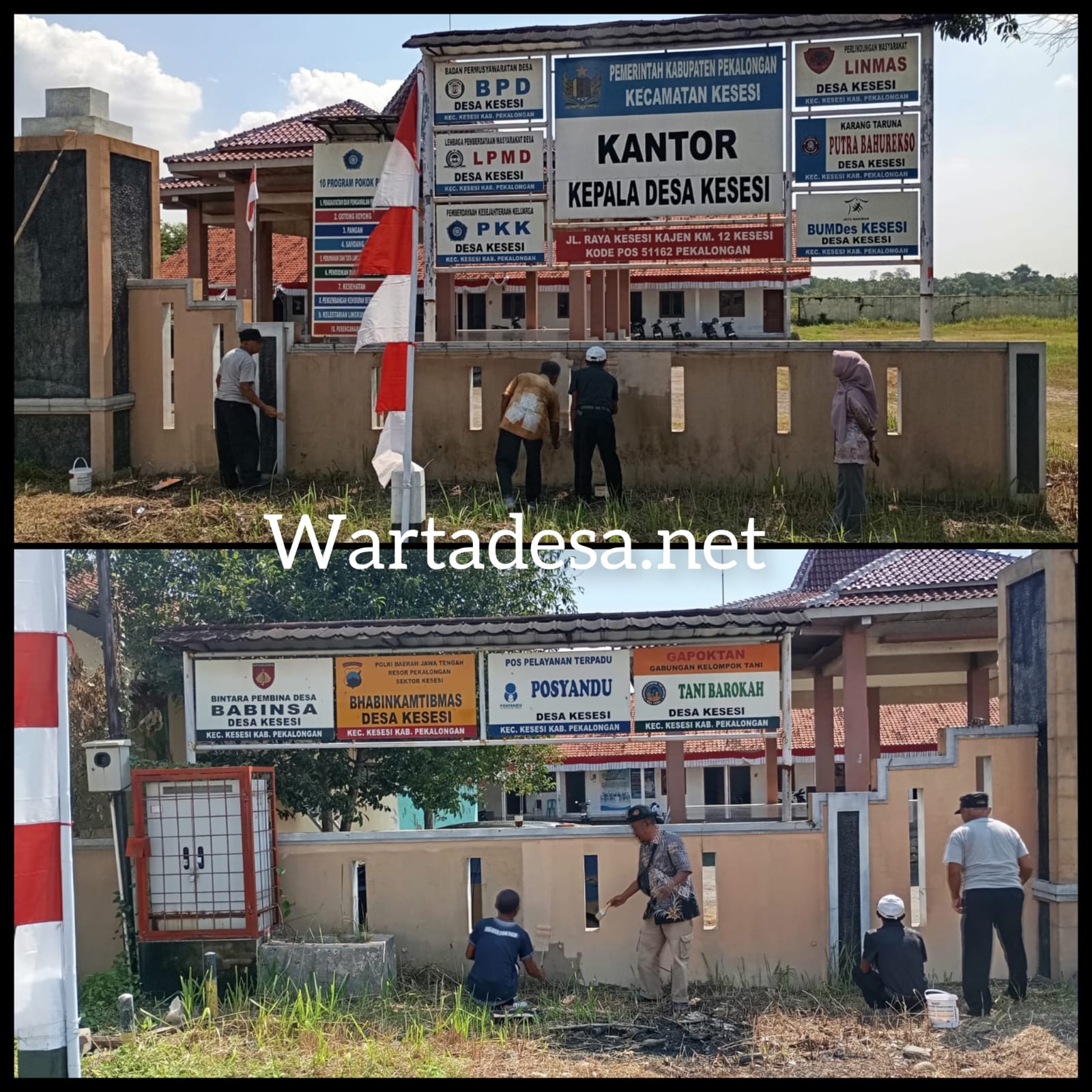 Warta Desa, Kesesi, 31 Juli 2025 — Dalam rangka menyambut Hari Ulang Tahun Kemerdekaan Republik Indonesia yang ke-80, Pemerintah Desa Kesesi, Kecamatan Kesesi, Kabupaten Pekalongan, melaksanakan kegiatan kerja bakti membersihkan halaman balai desa, memasang spanduk bertema kemerdekaan, serta mengecat ulang bangunan balai desa.