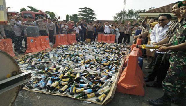 Ribuhan miras yang dimusnahkan adalah jenis arak orang tua botol besar sebanyak 2676 botol, arak orang tua botol kecil 48 botol, vodka ice land 72 botol, drum wisky 4 botol, topi miring 12 botol , beras kencur 2 botol, asoka 26 botol, bir prost 2 botol, anggur merah 53 botol, nggur putih 4 botol, anggur intisari 6 botol, ciu dalam botol plastik 239 botol. Jumlah 3127 botol dan ciu / arak 255 liter.