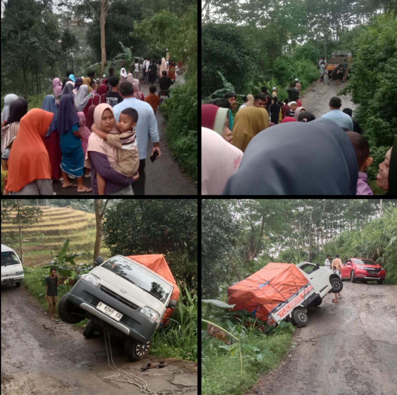 “Muatan sekitar 1 ton mas, saya naik jalan nya licin jadi nyelip dan mundur” kata sopir asal Cilacap 25thn yang tidak mau disebutkan namanya.