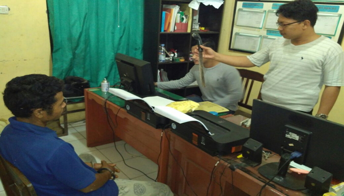 “Atas Perbuatannya, Tersangka akan di jerat Undang-Undang Darurat Republik Indonesia Nomor 12 Tahun 1951 Pasal 2 ayat (1) tentang Membawa senjata tajam tanpa ijin dan 351 KUHP,” ucap Kasubbag Humas Iptu Akrom. (Eva Abdullah)