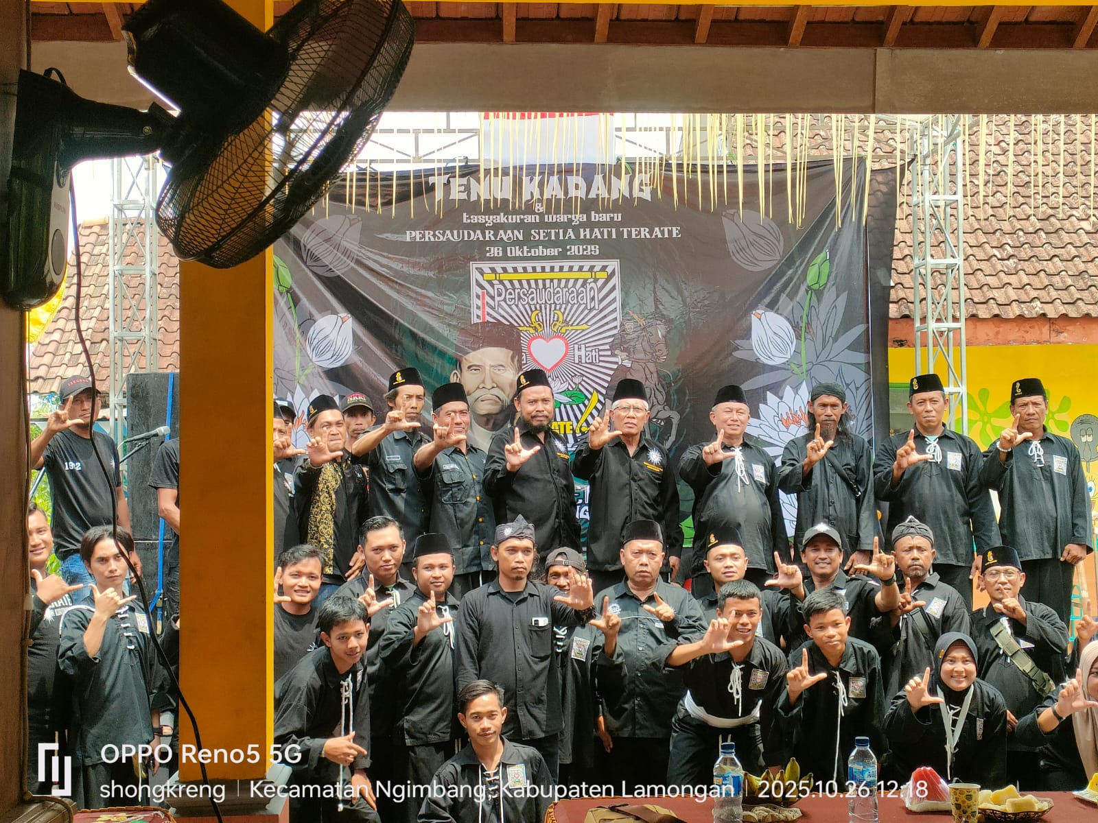 Warta Desa, Lamongan — Dalam suasana penuh kebersamaan, keluarga besar Persaudaraan Setia Hati Terate (PSHT) Rayon Tlemang, Ranting Ngimbang, menggelar kegiatan Temu Kadang dan Tasyakuran Warga Baru pada Minggu (26/10/2025), bertempat di Desa Tlemang, Kecamatan Ngimbang, Kabupaten Lamongan.