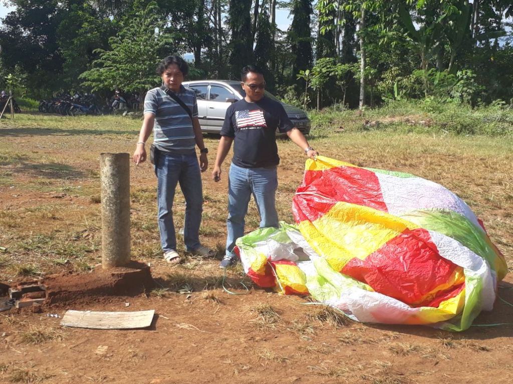 Polisi berhasil mengamankan barang bukti berupa satu balon udara warna putih kuning dan merah yang terbuat dari kertas minyak dengan diameter 4,5 m dan panjang 7 m, satu buah ekor balon udara warna merah hijau kuning yang terbuat dari kertas minyak dengan lebar 40 cm dan panjang 34 m, dan satu buah sumbu api dengan panjang 50 cm. Selain itu, diamankan pula satu buah tungku yang terbuat dari beton dengan panjang 1 m dan diameter 20 cm, dua buah potongan karet ban dalam dan bahan bakar solar.