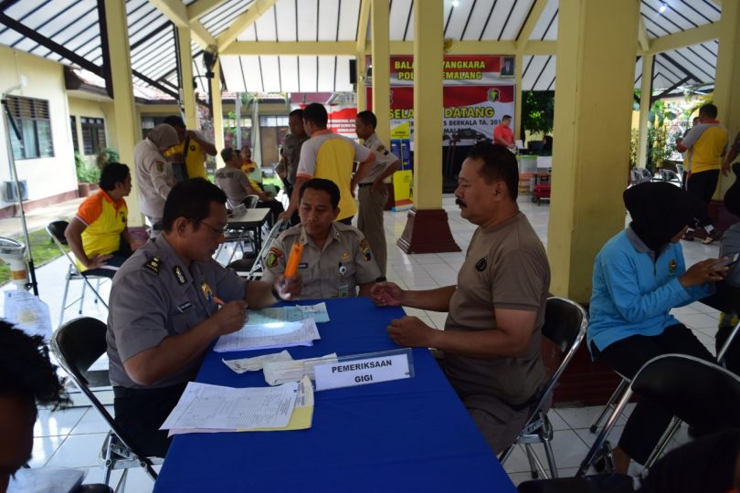 Pemalang, Wartadesa. – Tiga dari sembilan anggota Polri meninggal mendadak saat bertugas selama dua bulan terakhir. Hal tersebut membuat Bid Dokkes Polda Jateng menyelenggarakan Rikkes (Pemeriksaan Kesehatan Berkala) yang diikuti oleh 183 anggota Polri dan ASN Polres Pemalang di Aula Bhayangkara Polres Pemalang, beberapa waktu lalu.