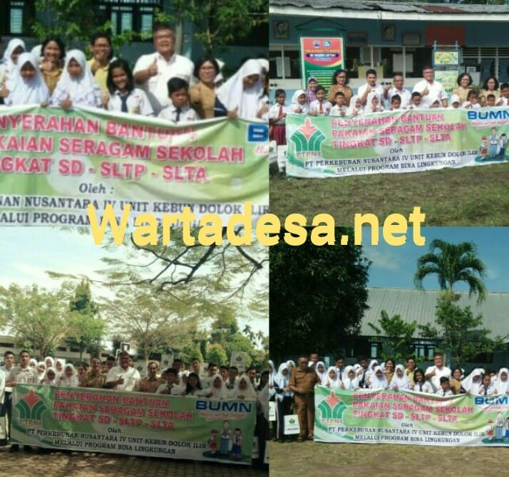 Simalungun, Wartadesa. – Ratusan siswa dari tiga sekolah mendapat bantuan pakaian seragam dari manajemen PTPN IV unit Kebun Dolok Ilir Kecamatan Dolok Batu Nanggar Kabupaten Simalungun Sumatera Utara dalam program Bina Lingkungan yang dilaksanakan sehari, Selasa (22/1).
