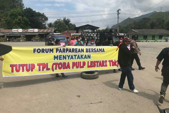 Toba (Wartadesa). – DISEBUT tidak bermanfaat dan rasis, puluhan aktifis tergabung dalam Forum Parparean Bersama (FPB) menggelar unjuk rasa menuntut tutup PT Toba Pulp Lestari Tbk, di depan gerbang masuk timbangan perusahaan tersebut di Desa Tangga Batu Kecamatan Parmaksian Kabupaten Toba Provinsi Sumatera Utara, Kamis (31/03/2022)