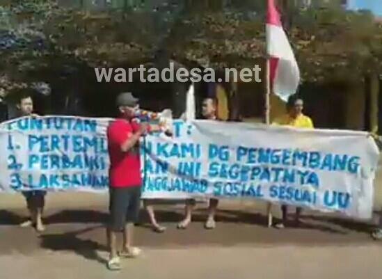 Bojong, Wartadesa. – Beberapa demo terkait dengan buruknya dampak pembangunan jalan tol ruas Pemalang-Batang digelar di wilayah Kabupaten Pekalongan dalam minggu ini. Hari ini, Jum’at (19/5) warga Desa Ketitangkidul Kecamatan Bojong menggelar aksi unjuk rasa rusaknya jalan akibat pembangunan jalan tol tersebut.