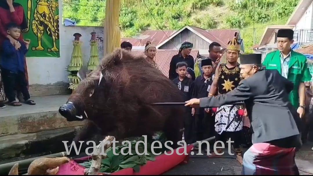 Usai arak-arakan, digelar pula seremonial penumbakan Ogoh-Ogoh babi hutan oleh Ki Dalang Atmo Subarno sebagai bentuk simbolis pengusiran hama dan energi negatif dari wilayah pertanian warga.