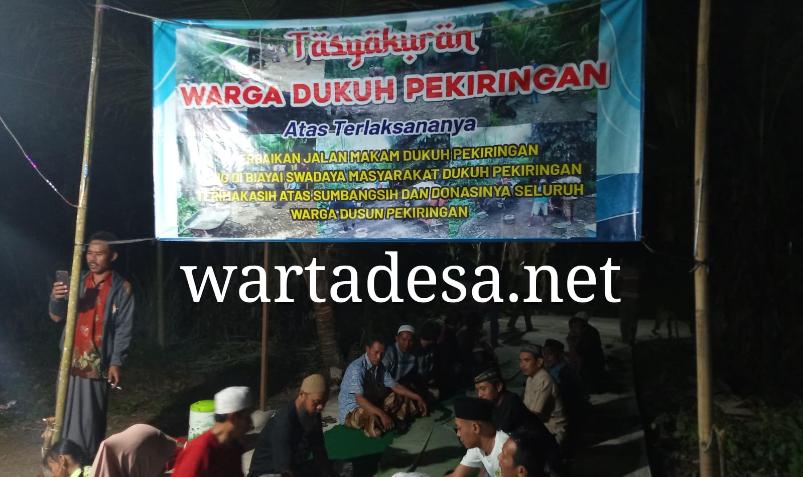 Warta Desa, PEKALONGAN – 27 Juli 2025 Sekitar 500 warga Dukuh Pekiringan, Desa Pekiringanalit, Kecamatan Kajen, menggelar tasyakuran atas rampungnya pembangunan jalan lingkungan yang dikerjakan secara swadaya murni. Acara yang berlangsung pada Minggu malam (27/7/2025) dihadiri oleh Kepala Dusun Sodikin dan berlangsung khidmat penuh semangat kebersamaan.