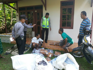 Nurkhasanah (40) warga gang V Rt. 05/15 Kelurahan Pringrejo, saat baru bangun tidur dikejutkan dengan dua karung besar yang mencurigakan. Saat dia membuka jendela rumahnya, dia melihat karung yang mencurigakan tersebut tergeletak di sekitar makam samping rumahnya.